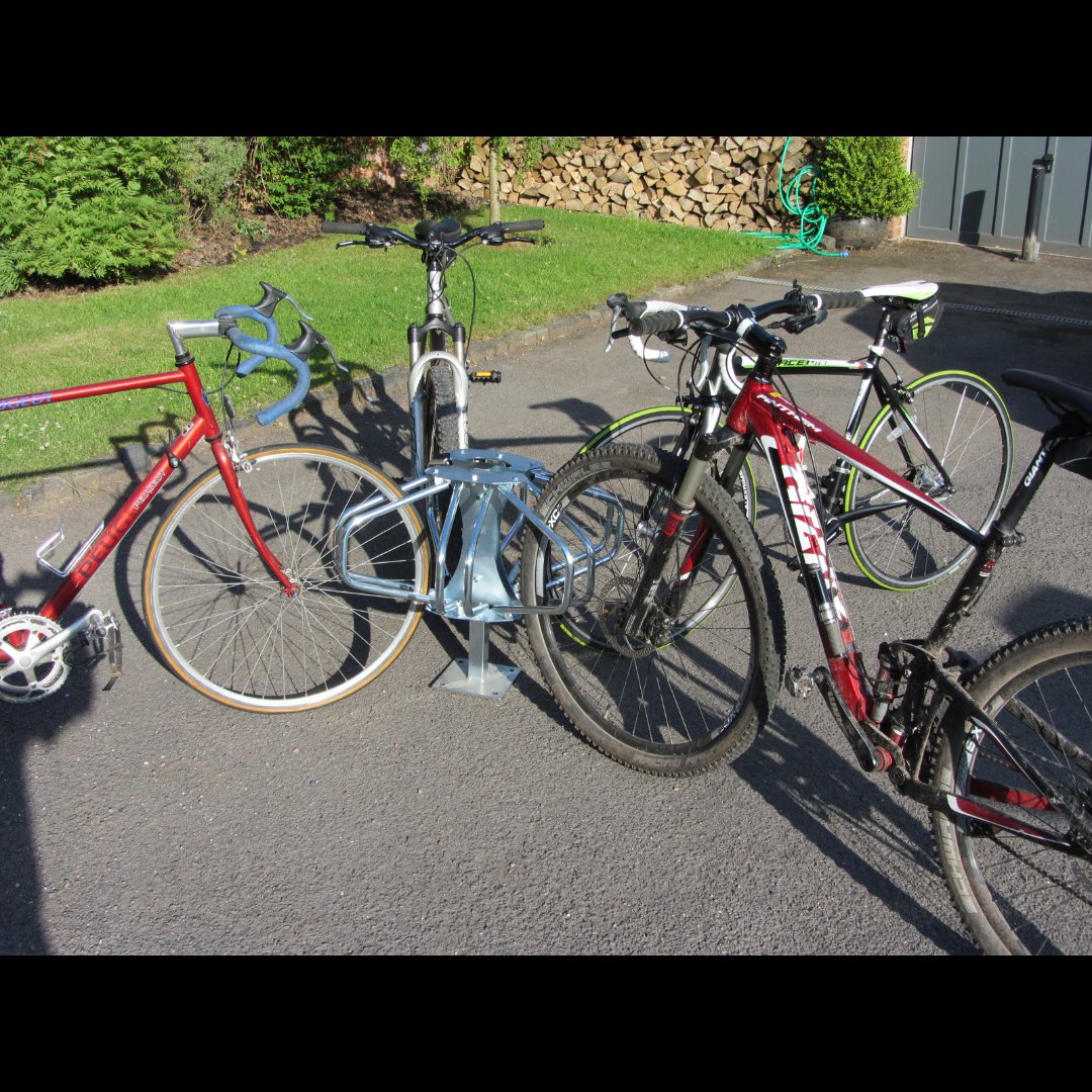 Floor-standing designs can range from simple, single-bike stands to more robust units that hold the whole family's collection.
